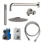 Caral inbouwthermostaat compleet met hoofddouche 30 cm, staafhanddouche, doucheslang en -arm geborsteld staal
