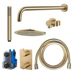 Caral inbouwthermostaat compleet met hoofddouche 30 cm, staafhanddouche, doucheslang en -arm geborsteld messing