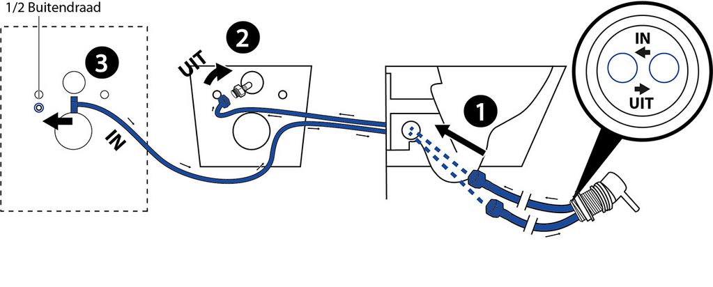 Dit toilet is voorzien van een ingebouwde bidetkraan welke u vindt aan de zijkant van de pot.