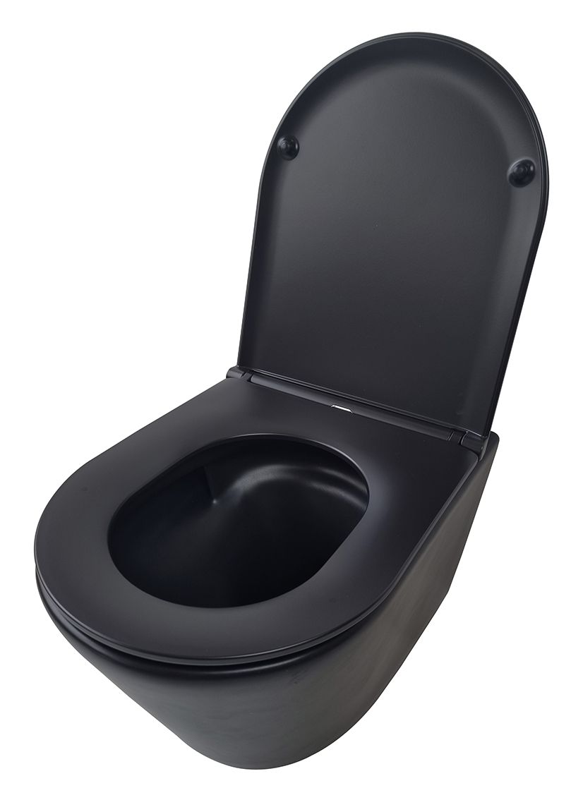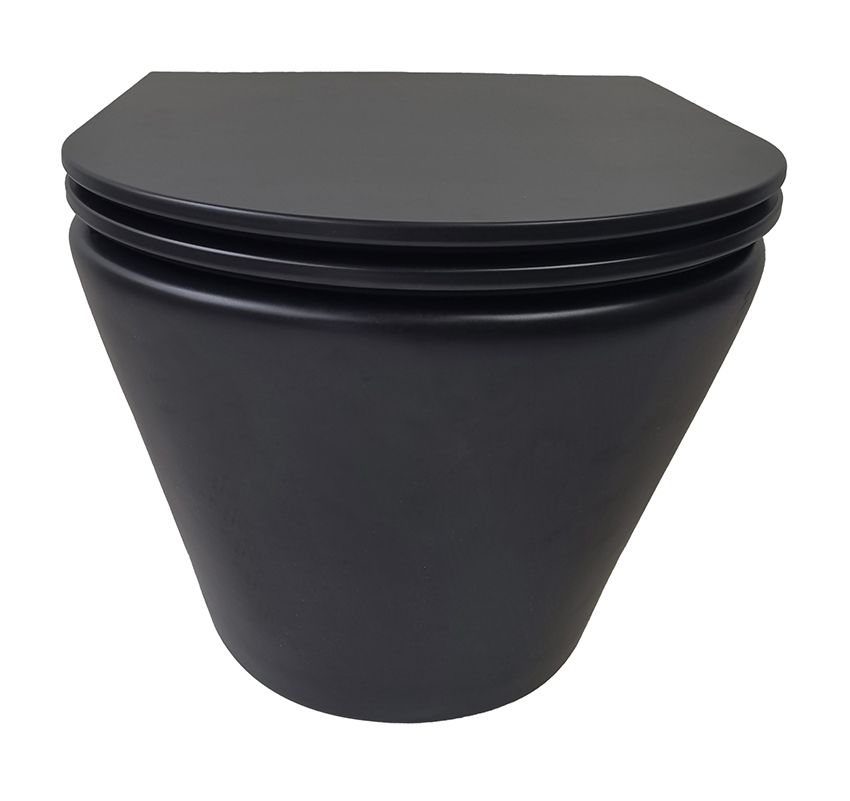 Vesta rimless wandcloset Tornado flush mat zwart met Flatline toiletzitting softclose en quick release mat zwart