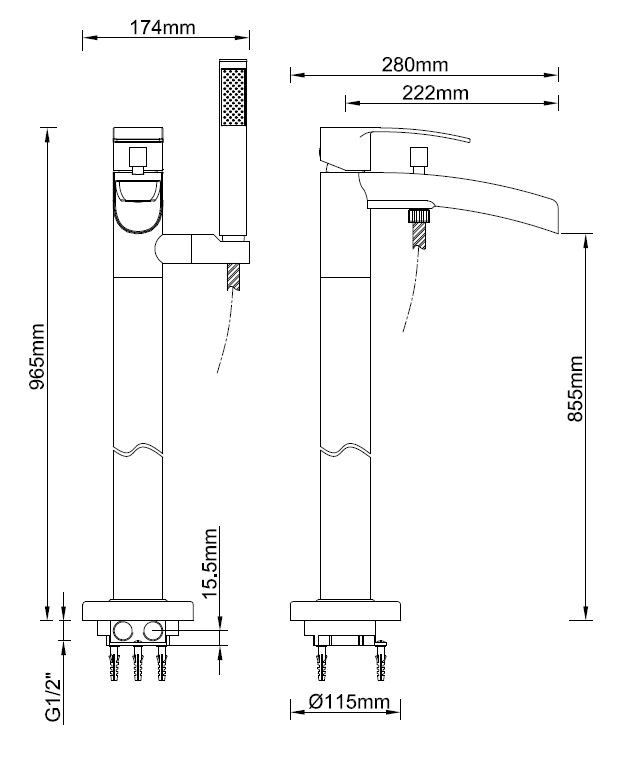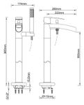Vrijstaande badmengkraan waterval compleet geb.staal