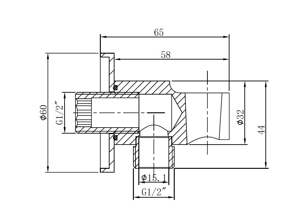 Wandaansluitbocht met handdouchehouder rond 1/2″ gunmetal
