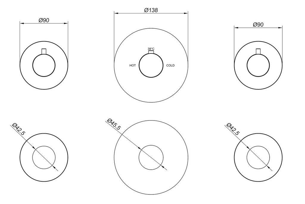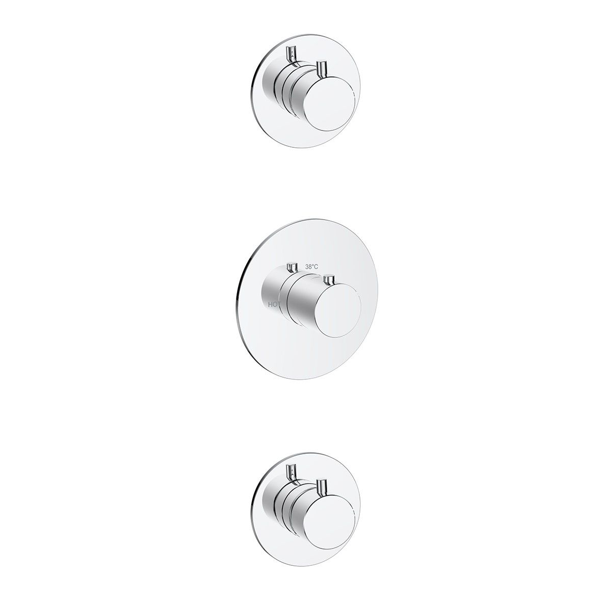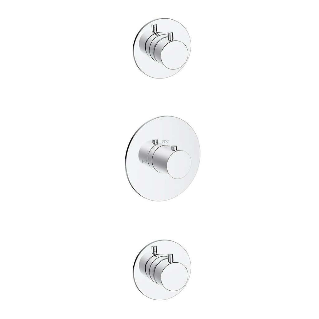Het bevat 1 grote, ronde rozet, Ø9,6 cm voor de thermostatische douchemengkraan en 2 kleine rozetten, Ø 8 cm voor de stopkranen.